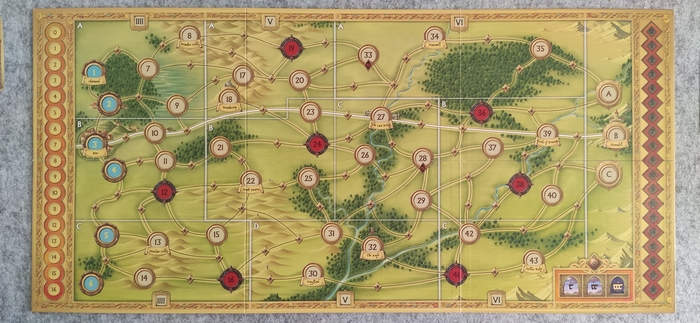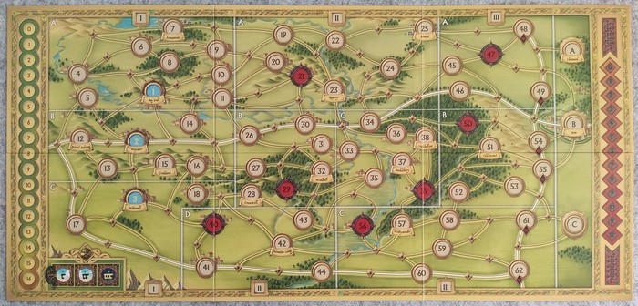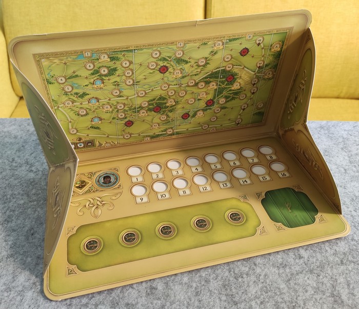 По ходу игры специальный маркер будет перемещаться по ячейкам этой карты, а его положение в конце игровой сессии может повлиять на финальный счёт.