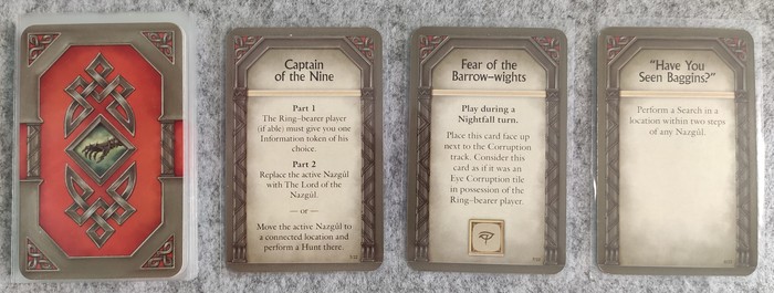 - Меч - охота или удаление жетона “союзника”. Назгул имеют шанс изловить Фродо, если они достаточно уверены в его местоположении.