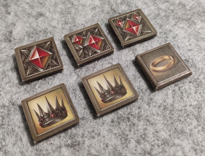 Игрокам-кольценосцам запрещено делать какие-либо записи во время игры. Однако они могут воспользоваться набором специальных жетонов, чтобы отмечать необходимую игровую информацию по своему усмотрению.