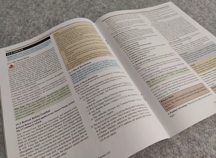 Глаза разбегались от обилия всего. Брошюра правил с кучей текста, три буклета с инструкциями и описаниями для каждой из битв. Множество каунтеров (жетонов) с обозначением различных видов войск.