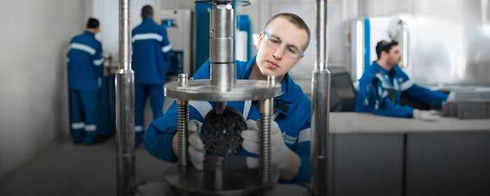 Добавка МСБ1 представляет собой модификатор структуры битума — он улучшает свойства битумных материалов в составе асфальтобетонной смеси. Для него ученые разработали уникальный состав. Одним из ингредиентов стала резиновая крошка из старых автомобильных шин. Благодаря специальной предварительной обработке она более равномерно распределяется в смеси, взаимодействует с битумом, изменяет его эластичные свойства. За счет этого в дорожном покрытии формируется пространственная сетка — своего рода каркас, который укрепляет битум.
