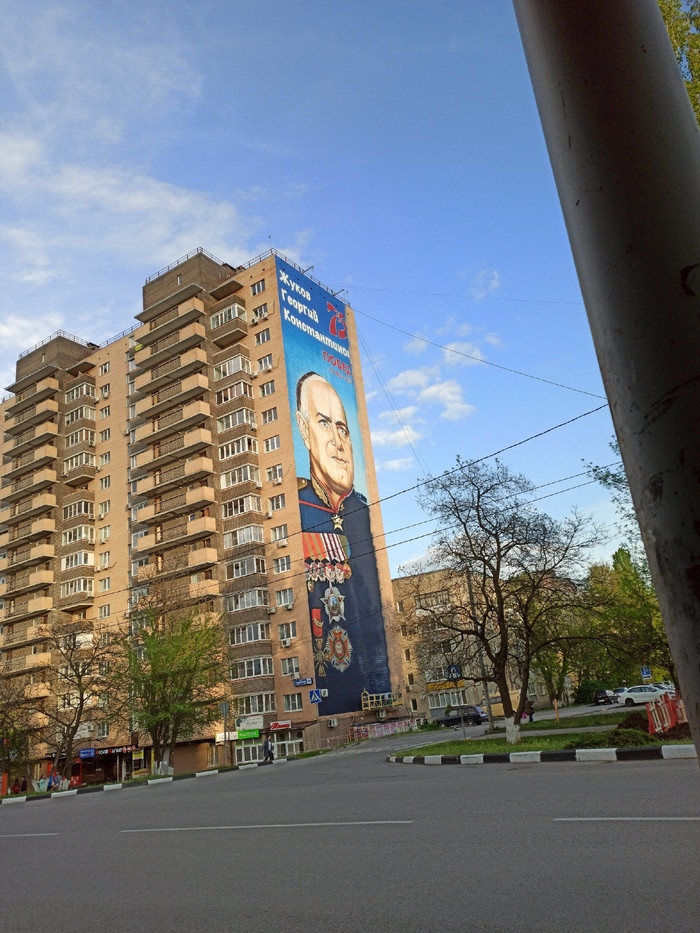 Самым большим в России признан портрет маршала Советского Союза Георгия Константиновича Жукова, изображенный на стене 16-этажного дома на ул. Садовой, 8 «Б» в Аксае.