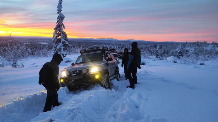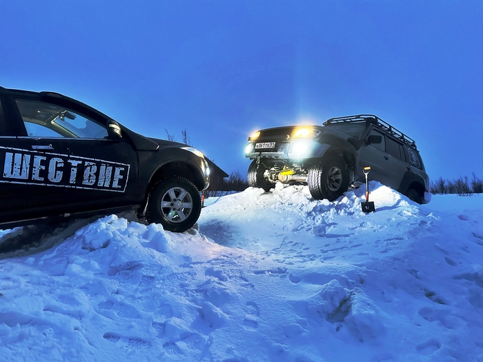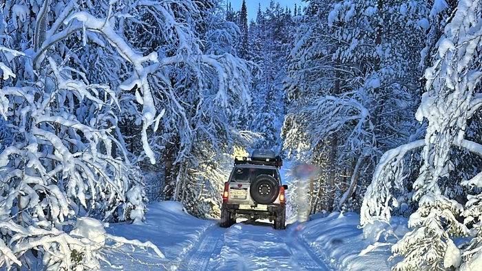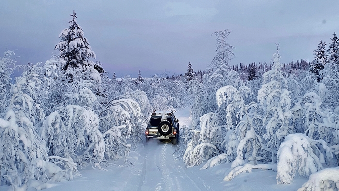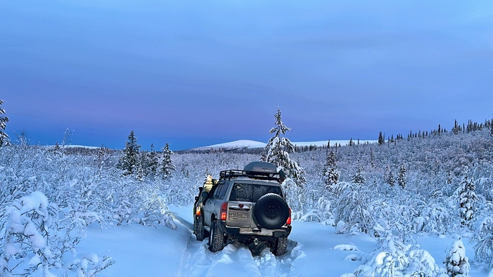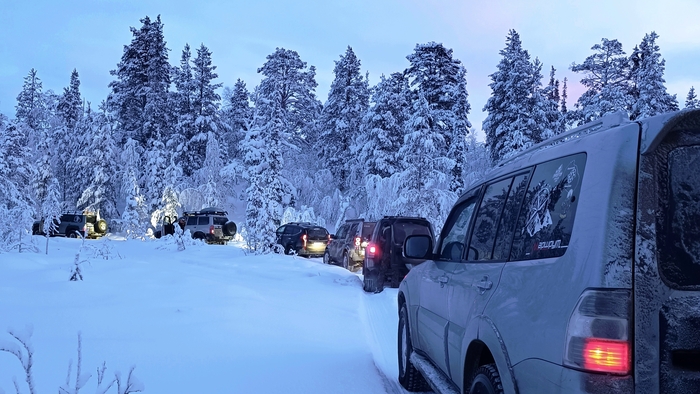Утро следующего дня, старт! Встречаемся на отворотке в лесную просеку, сразу спускаем колеса, подключаем лебедки, расчехляем лопаты, зимние сапоги повыше, перчатки и балаклавы перекладываем поближе. За бортом -20!