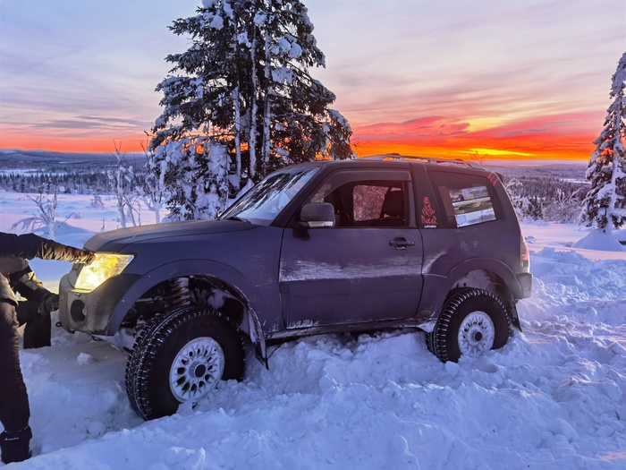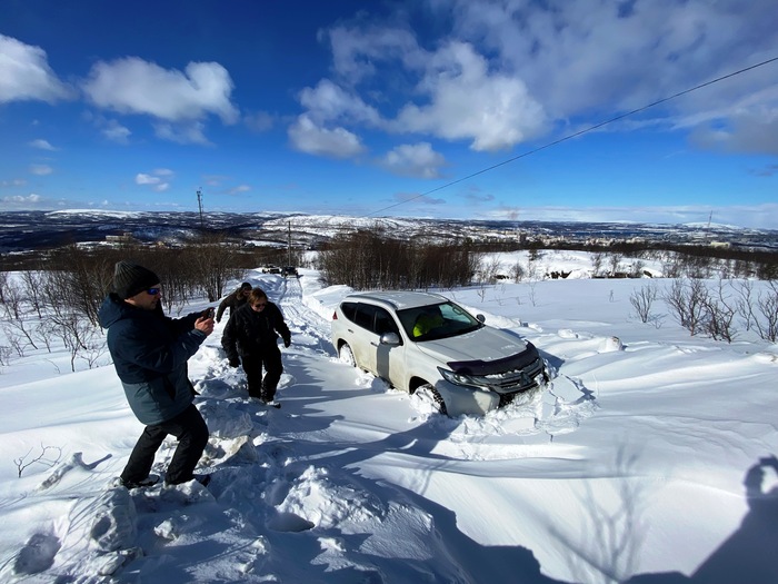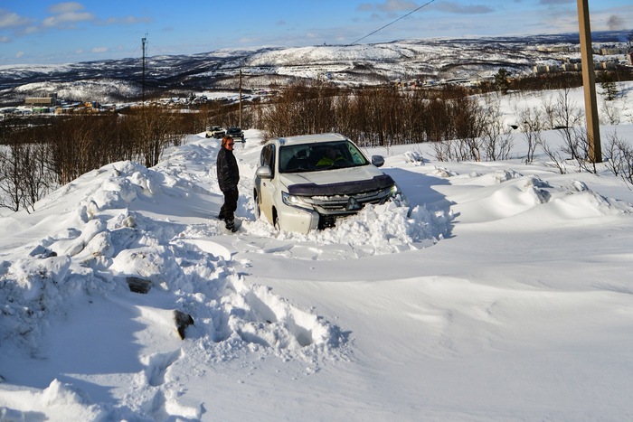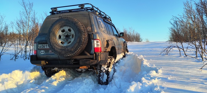 Еще через 100 метров мы уперлись в снежный наст, машину он не держит, с учетом того, что первые машины весят по 3 тонны, а то и более думаю, даже на спущенных в 0.3атм колесах.