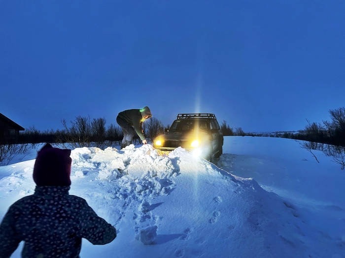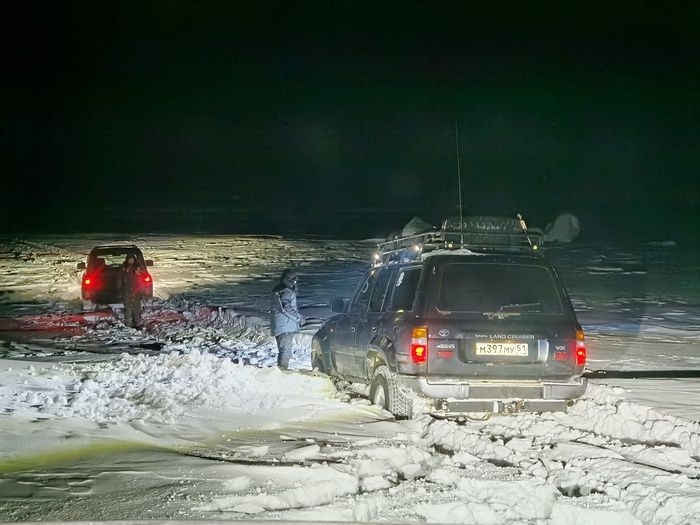 Буквально через 5 км я встаю на обочине, пропадает тяга, глохну. Останавливаются доблестные сотрудники ДПС, включают мигалки и стоят со мной пару часов, чтобы в меня никто не влетел, дорога скользкая, на улице снова -30, место не особо удачное для остановки. Ребята приехали и оттащили меня к заправке, там долго искали причину, меняли фильтра, лили теплое топливо и еще много чего в бак, и по итогу машина осталась там ночевать.