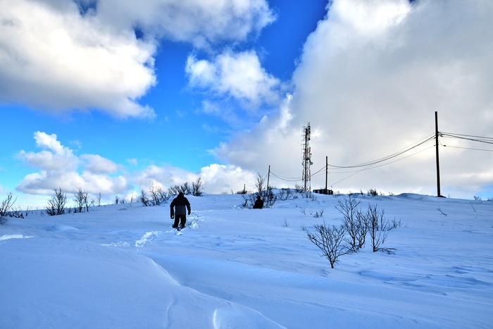 Решаем вытаптывать направление – кто больше ходит, тот дальше едет! Вышел, пробежался метров 20-30 вперед, выбрал направление без камней и приблизительно недалеко от основного направления по карте и поехал топтать снежную целину.