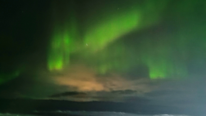 На небе отчетливо видно северное сияние, очень красивое зрелище, но пока не до него!