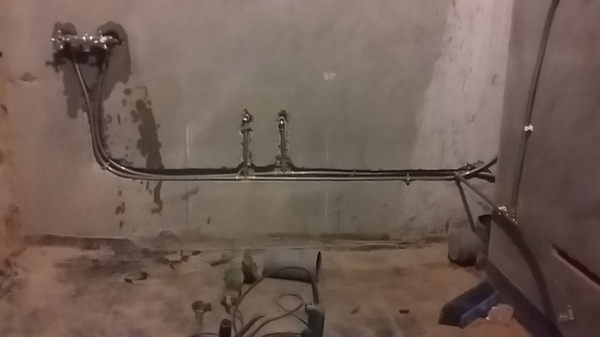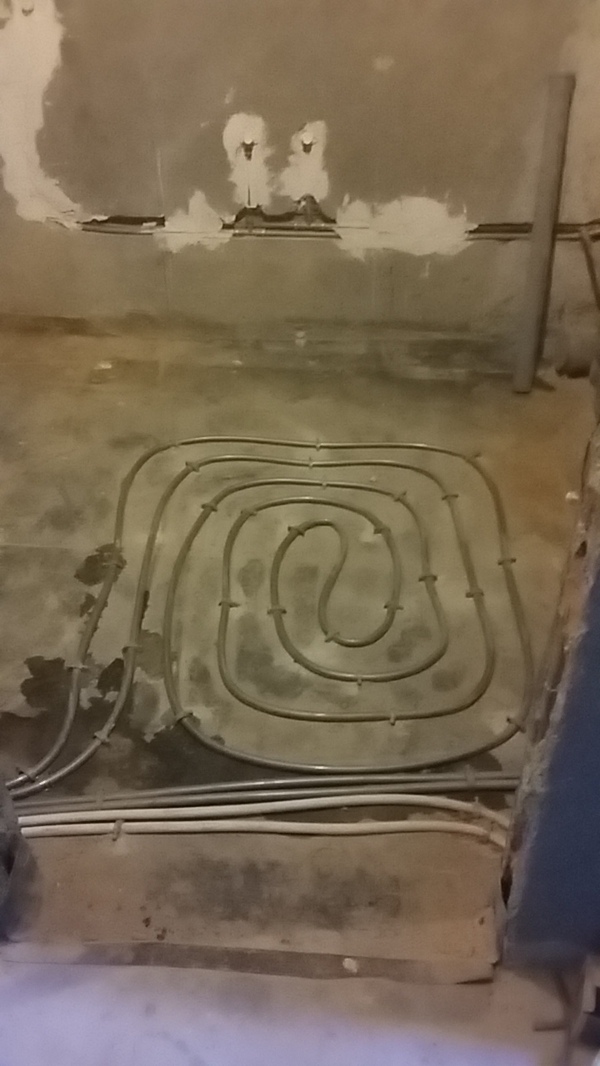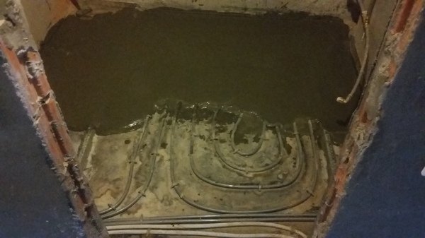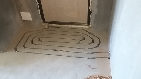 и протягиваем теплый пол(две трубы с права идут в прихожую)