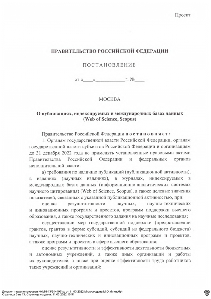 Что это значит? Это значит что никакой отчетности по статьям WOS и Scopus по госзаданию в этом году не будет. Можно публиковать что угодно и где угодно. В любых журналах. Конкретного плана по поводу дальнейшей оценки результативности ученых - нет.