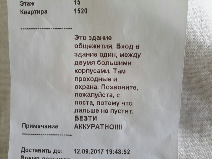 Заказывали с девушкой в одном месте суши и курьер привез их в очень смятом состоянии, но есть хотелось очень сильно и желания ругаться с доставкой не было. Оказалось очень даже вкусно. Вчера решили заказать в том же месте, но по телефону уточнили, что желательно было бы привезти немного аккуратнее. И вот что мы обнаружили в чеке потом.