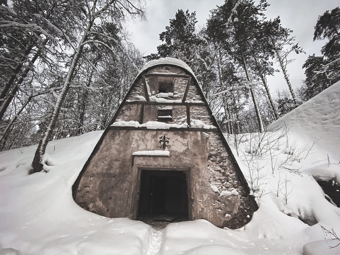 На окнах кое где сохранились кованые металические решетки и петли от дверей, кто-то принес крест и иконки. Здание погибает, но дух живет.