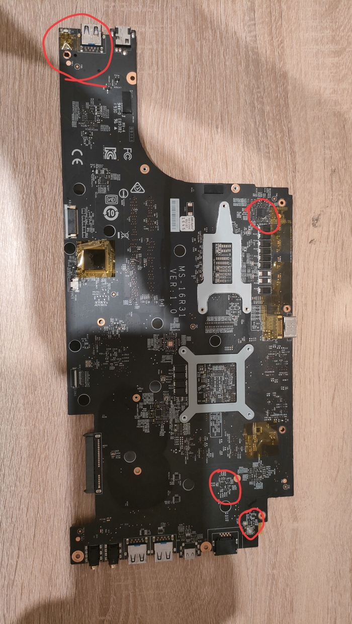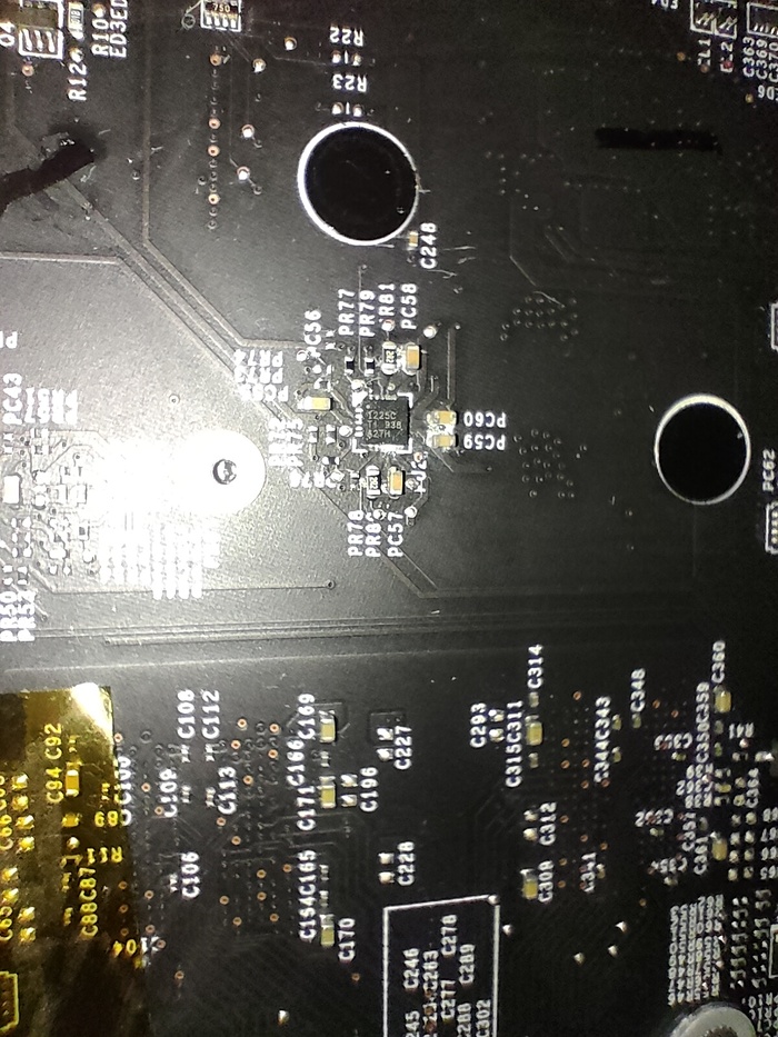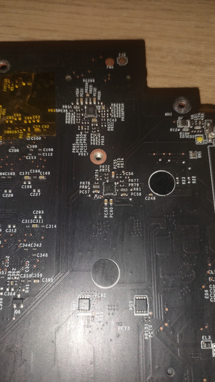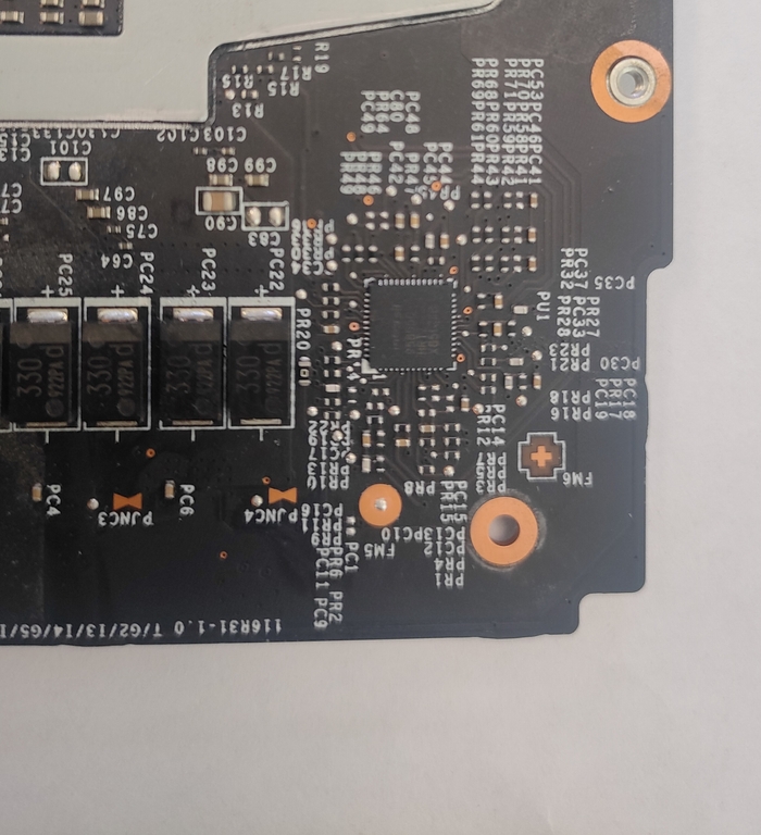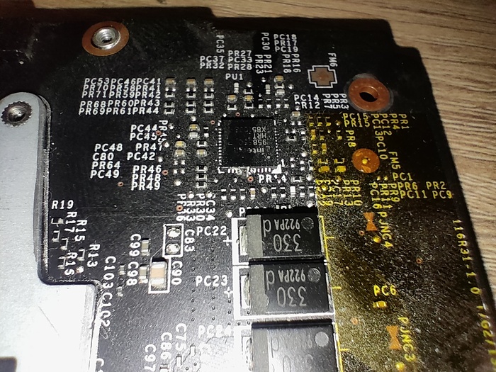 Проверяю все линии питаний, чтобы не было занженных сопротивлений. Меняю шим дежурного напряжения, т.к между выводами 8 и 9 сопротивление стало 50 Ом, вместо килоомов. Заменил на аналог RT8249C, такие были в наличии. Также заменил подгнивший резистор около кнопки включения.