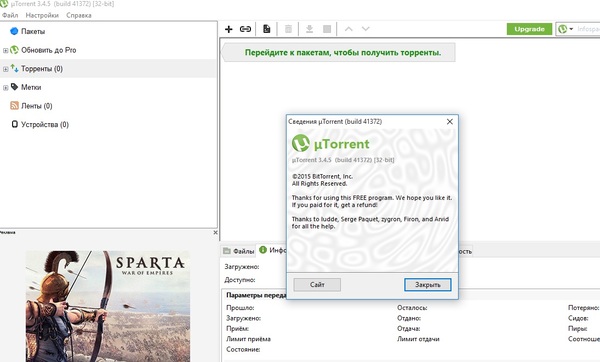 В окне «О μTorrent» (вызывается через меню Справка → О программе μTorrent) можно найти два так называемых «пасхальных яйца» (отсутствуют в версиях для Mac OS X)