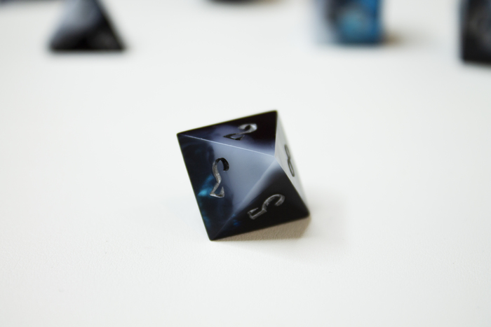 Первый раз я заказала печать 3D-модели дайсов в своем городе, и на следующий день они были готовы. Но когда я приехала их забирать, то очень и очень удивилась. Во-первых, из-за того, что кубы довольно маленькие, сложно оценить, должен ли быть D20 куб в высоту, например, 22мм или 23 мм? А это очень большая разница, если мы говорим о дайсах. И если все-таки 22мм, то от грани до грани или от вершины до вершины? Из-за этого, когда я получила свои кубы, то увидела, что часть из них была слишком маленькой, часть – слишком большой, и только два – D8 и D12 – были более-менее нормального размера. Во-вторых, те, кто мне печатал кубы совершенно не озаботились (а я заранее не попросила, так как не подумала) нормальным выставлением поддержек. В итоге я получила кубы, где часть поддержек оказалась прямо в углублениях цифр, откуда их было не достать ни скальпелем, ни тонкими насадками маникюрного аппарата. В-третьих, сами поддержки мне после печати срезали и немного зашлифовали, но в некоторых местах перестарались, убирая их следы. Поэтому, например, D8 получил две перешлифованных грани, которые оказались явно больше всех остальных, что нарушало и баланс, и эстетику куба. По своей неопытности исправить я это тоже в итоге не смогла. И в-четвертых, наплывы, которые я устала шлифовать в последствии.