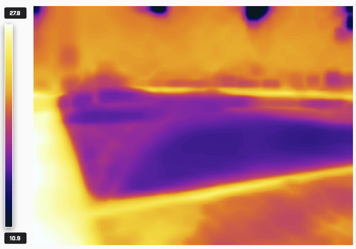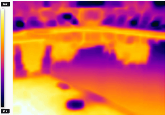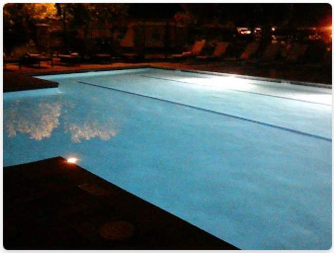 Бассейн. Тут было освещение, и удалось получить обычный снимок. Интересно, что ИК-излучение отражается в воде, как и обычный свет.