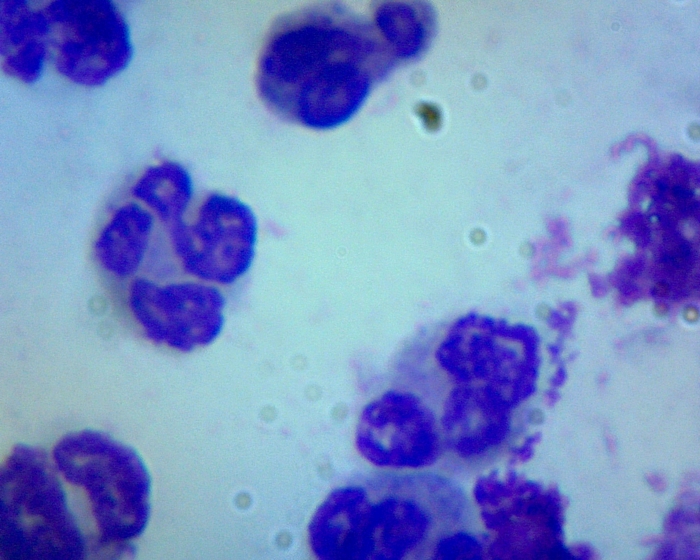 Но при увеличение x4000 я понял, что это нейтрофилы, а это вроде нормально для здорового человека.