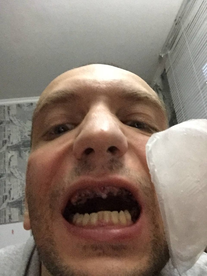 не знает, магазин такой, в котором футболка может стоить 800к). соответственно, контингент там - мажоры, звезды, даже политики. даже очень серьезные политики. я хоть и не продавец, но с людьми контактирую, разговаривать надо. и с коллегами, и с клиентами. а как, когда сверху вообще нет зубов? когда во рту кровавая каша? естественно, я плохо спал перед работой, плохо выглядел. через дикую боль, несмотря на тонны обезболивающего, чувствуя каждый миллиметр, на которые были вкручены импланты в мои кости, боясь наклониться, чтобы не разошлись швы, плюясь красными от крови слюнями, я кое как отработал свою смену и последующие 2 недели, что заживала десна. это был ад. про еду в эти 2 недели