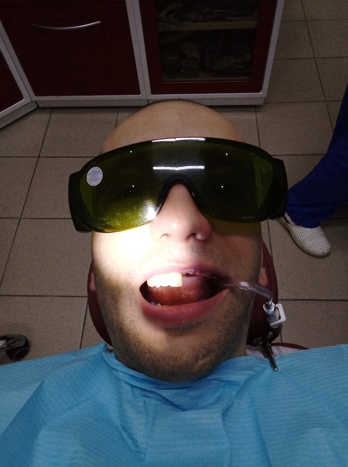я зашел в кабинет, где меня ждало 5 человек - непосредственно сам врач, 2 его ассистентки, и 2 практиканта. мысленно попрощавшись с жизнью, я лег в кресло, снова испытав то чувство, когда точно знаешь, что жизнь разделиться на "до" и "после". на меня надели солнечные очки, подготовили к операции, включили свет.. не знаю, как называется эта ебучая лампочка, которая светит в рот, но сквозь солнечные очки на ней хорошенько так, вполне себе четко, отражалось мое раскрытое ебало. вкупе с постоянными комментариями доктора своих действий практикантам, я был самым что ни на есть активным зрителем и участником своей собственной операции. стремное ощущение, скажу я вам.