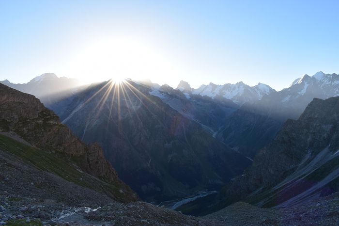 Здесь видно, что луна еще не ушла, а солнце вот вот выйдет из горизонта