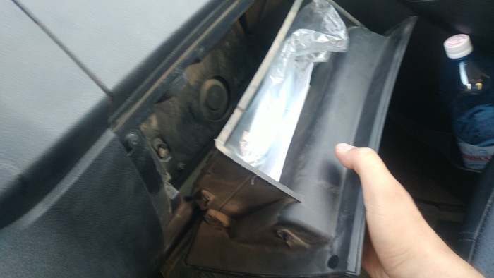 Сломанный бардачок для двух масок, все что туда помещается.