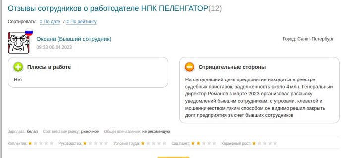 Так же увидел что такой свежий отзыв на странице с отзывами о работодателе.