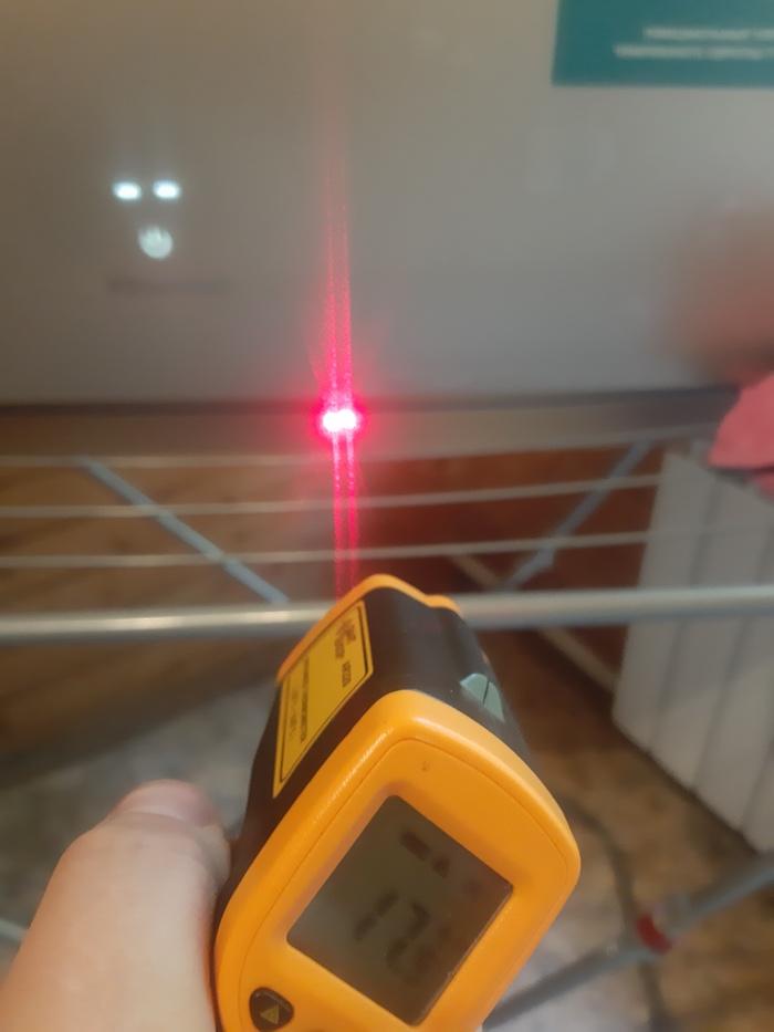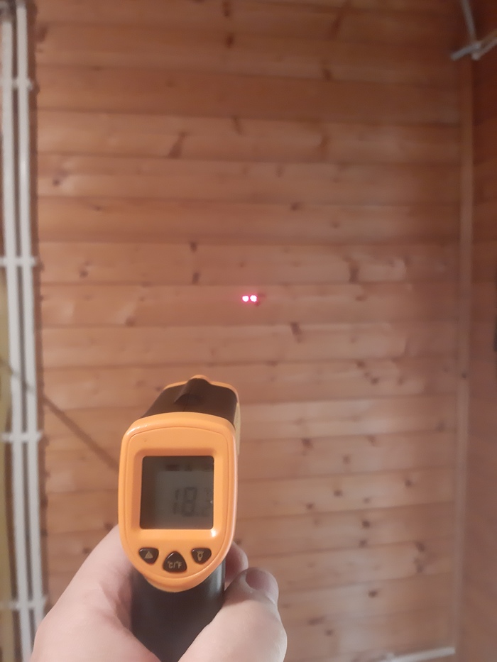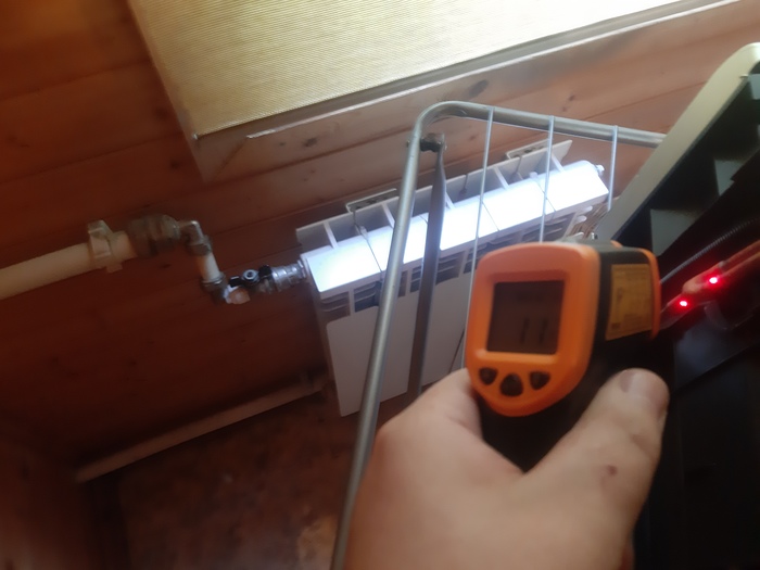 Меряем температуру воды на входе и выходе, выходящего воздуха и комнате(8 кв).