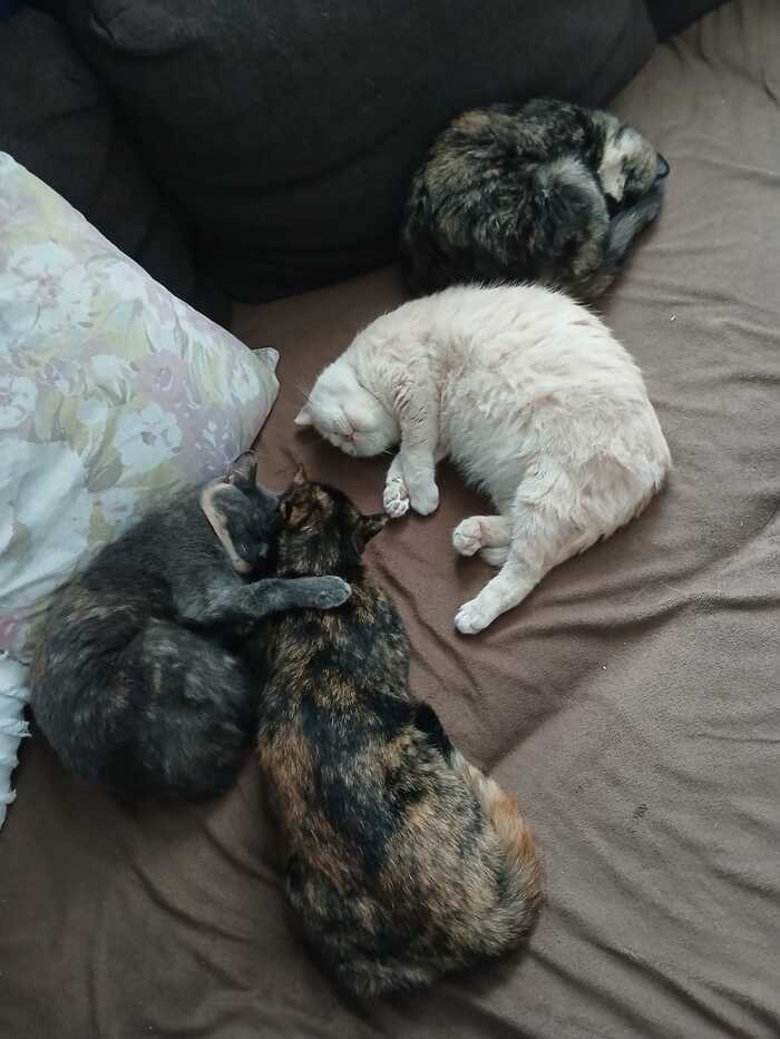У нас уже 7 лет живет кошка-недотрога, наполовину британка, наполовину дворняга. Гладить нам себя позволяла через раз. Полтора года назад взяли двухмесячного котёнка. Ох, как она бесилась. При первом знакомстве (наша ошибка, сразу в дом понесли, не дали привыкнуть к запаху) кинулась на него, а когда мы его спрятали, то и на нас. Причём кидалась злобно, с остервенением. Первый раз в жизни я убегал от кошки)) Примерно месяца 1,5-2 пришлось держать их отдельно. Через какое-то время полосанула ему когтем глаз, повредила зрачок, до сих пор не расширяется до конца. Даже сейчас подпускает его к себе, максимум рядом посидеть могут и периодически гоняют друг друга по дому. И вот на прошлой неделе кто-то подбросил котёнка, девочку, по размеру - месяц от силы ей, кушать учили с нуля. Учитывая прошлый опыт - поселили пока отдельно от взрослых на веранде, переживали, что обижать будут. Через пару дней потихоньку начали знакомить. На наше удивление кошка поначалу совсем игнорировала её, только шипела, когда мелкая приближалась. А кот заинтересовался, но боялся её до усрачки. Прошла неделя - мелкая рассекает по дому, обшипела уже обоих в ответ, кошка по-прежнему рычит и убегает, кот уже не так сильно боится её, думаю, что подружатся