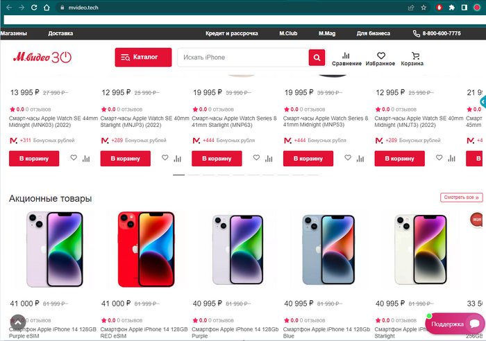 После того, как прожимается купон, осуществляется переход на фейковую страницу mvideo, где можно выбрать товар со скидкой 50%.