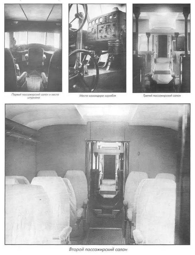 В специальных четырех спальных кабинах насчитывалось шестнадцать мест для отдыха. Здесь, как и в салонах, — столики, удобные мягкие кресла, зеркала, ковры. Стены покрыты специальной звукоизоляцией, которая позволяла в пассажирских помещениях свободно разговаривать, не повышая голоса. Среди других удобств можно было назвать: гардероб, туалетные комнаты, библиотеку со справочной, художественной и технической литературой и т. д.