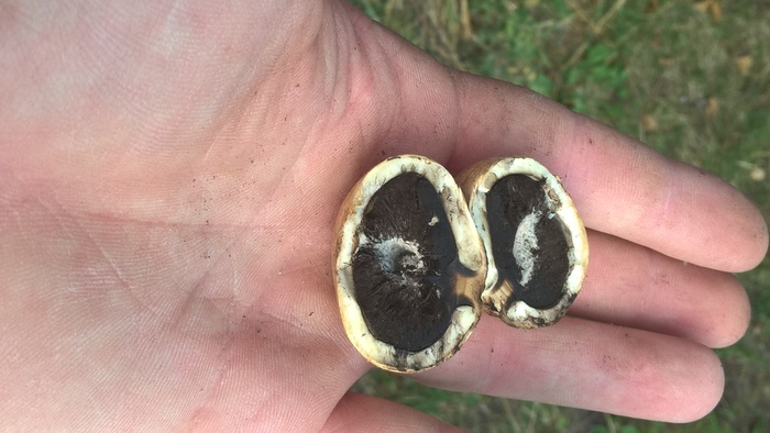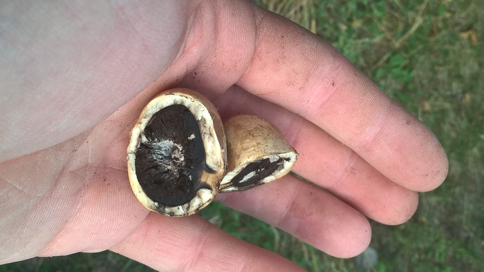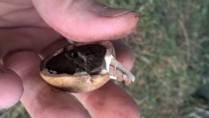 Режу, конечно. Внутри- что- то черное. Вопрос к биологам, может быть к грибникам. Это что вообще у меня выросло? И сколько оно стоит?) Россия, Курганская область.