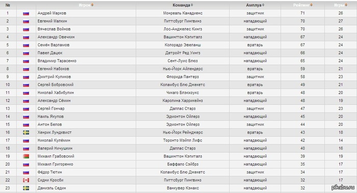 1 fighterx 11 лет назад Рейтинг игроков в НХЛ после этого я стал относиться к нашим хоккеистам с еще большим уважением [моё] Россия Хооккей Гордость НХЛ