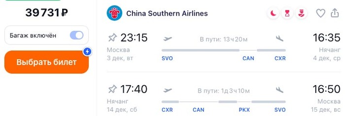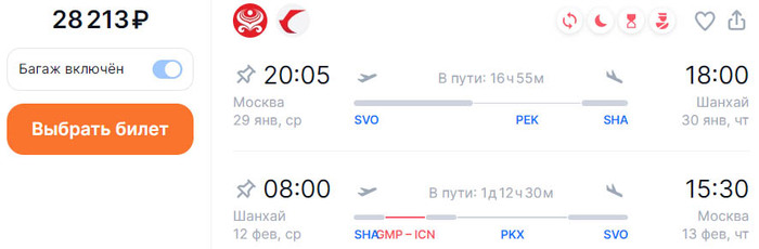Начнем с единственного билета для перелета в город, для которого придется делать визу - Шанхай. Перелет с пересадкой в Пекине. Багаж уже в цене, так что можно на обратной дороге устроить небольшой шопинг.