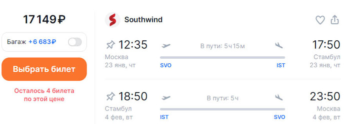 Или вот ещё один вариант побывать недорого за границей - Стамбул (есть билеты и в курортные города, но купаться сейчас в море холодно). Перелет в оба конца обойдется вам в 17149 рублей. Виза не нужна, но за багаж придется доплатить. В Стамбуле вы точно найдете что посмотреть и чем закупиться.