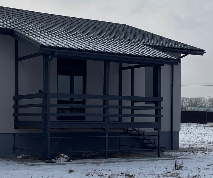 Снаружи: Стены – газобетон. Подшивка – металл. Кровля – металл. Фронтоны – металл.