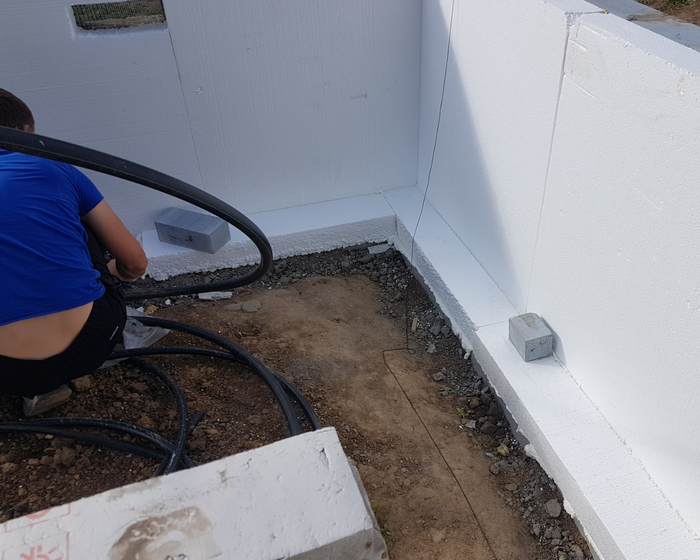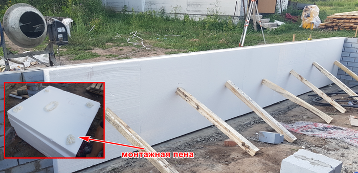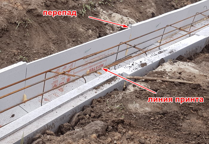 Почему он решил, что каждый принт будет всегда в одном месте непонятно. Итог часть опалубки из утеплителя вышла разной высоты. (4 см).