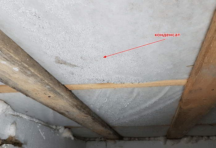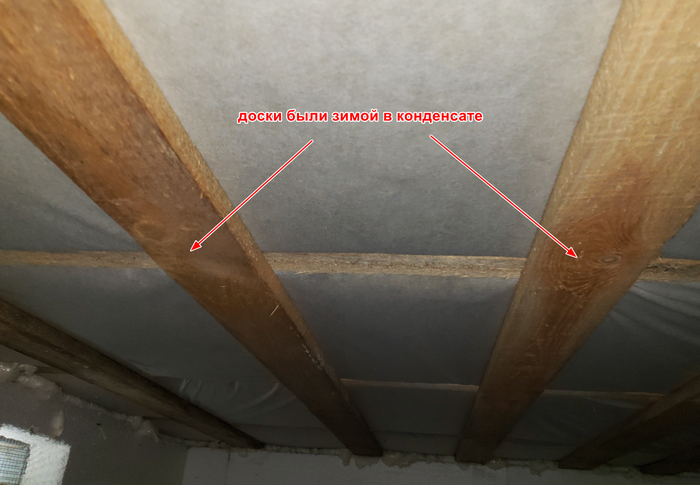 Как я и думал с крышей ничего не было. Свежий дом из газосиликата, (построен прошлым летом) активно сох, влага шла во все щели. На чердаке вся мембрана была в конденсате что, собственно, его и испугало.