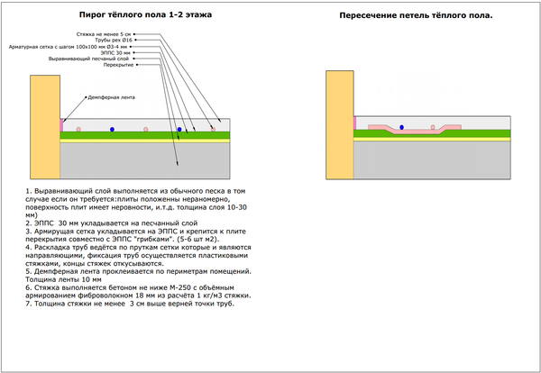 И добавился новый узел, пересечение петель тёплого пола. Обычно этого стараешься избежать, но не всегда удобно получается. Поэтому приходится "подныривать". благо в утеплителе это просто сделать.
