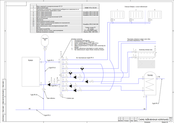 Особенность ПРОЕКТА в том что в данном случае котельная расположена в отдельном здании метрах в 30 от дома. и часть оборудования в ней а часть в доме.