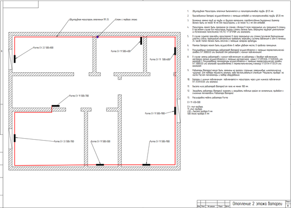 Маленькая ремарка. Я когда считаю отопление для своих заказчиков проект я оформляю в чёрную для себя, а в смете часто не замазываю размеры и марку приборов. Грубо говоря, лень, да и смысла в общем нет. Без проекта сделать правильно, только по смете. Нереально.