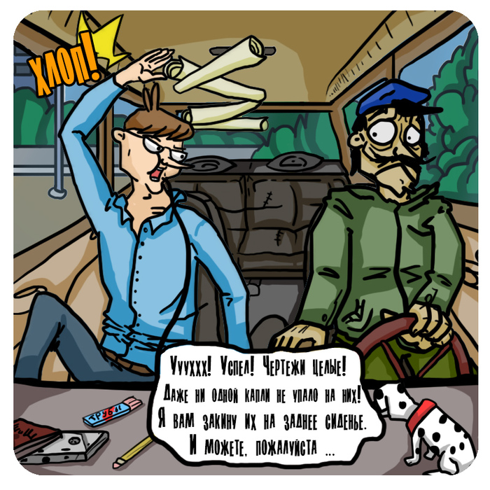 История основана на реальных событиях. Был момент, что студенты принесли печатать чертежи, положили их с собой в машину на сабвуфер, включили на всю громкость музыку, из-за чего бумажные чертежи порвало в клочки. Так что бери с собой тубус. @ZaTaS, говорят, ты тут есть.