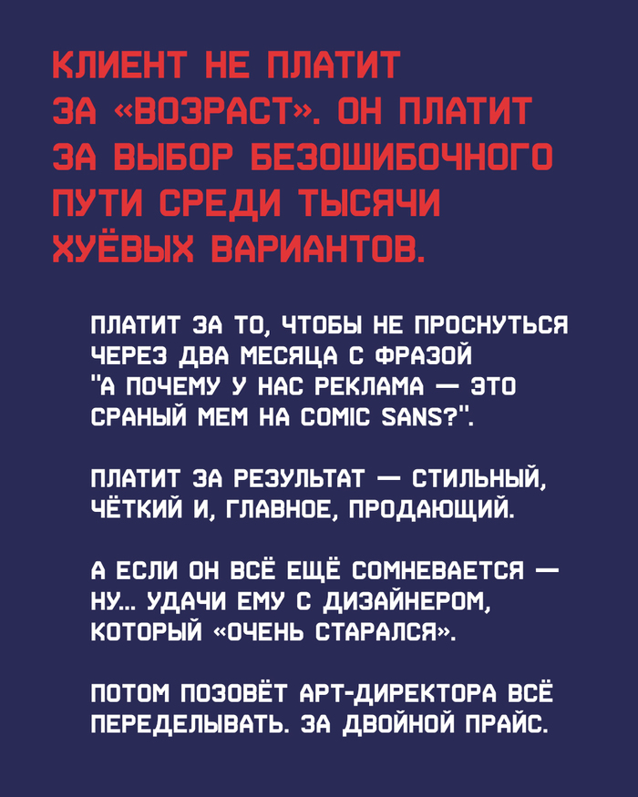 Расскажу на примере графического дизайнера, арт-директора, но это работает в любой профессии. Врач, плиточник, сантехник, стилист. Запоминай, почему ты крутой и используй эти аргументы для продажи себя.