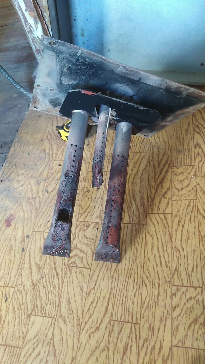 Когда вынул старую горелку из печки, был удивлен. Как это еще не полыхнуло то.