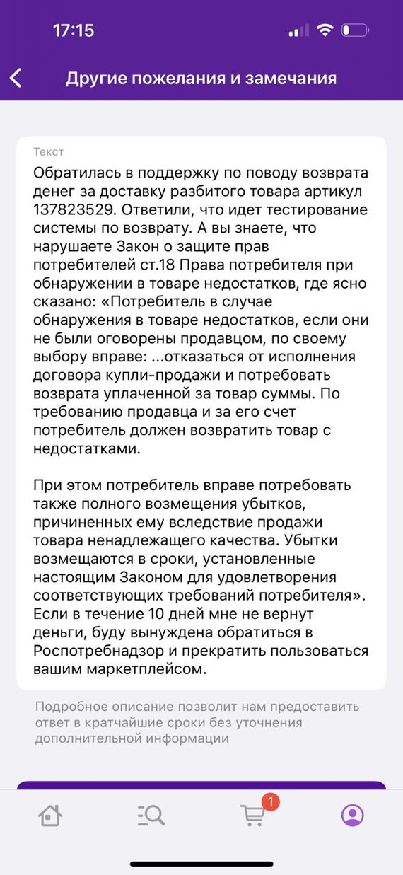 Я, если честно в шоке, уже не надеялся вернуть продукты, но такое отношение к покупателю - очень приятно.