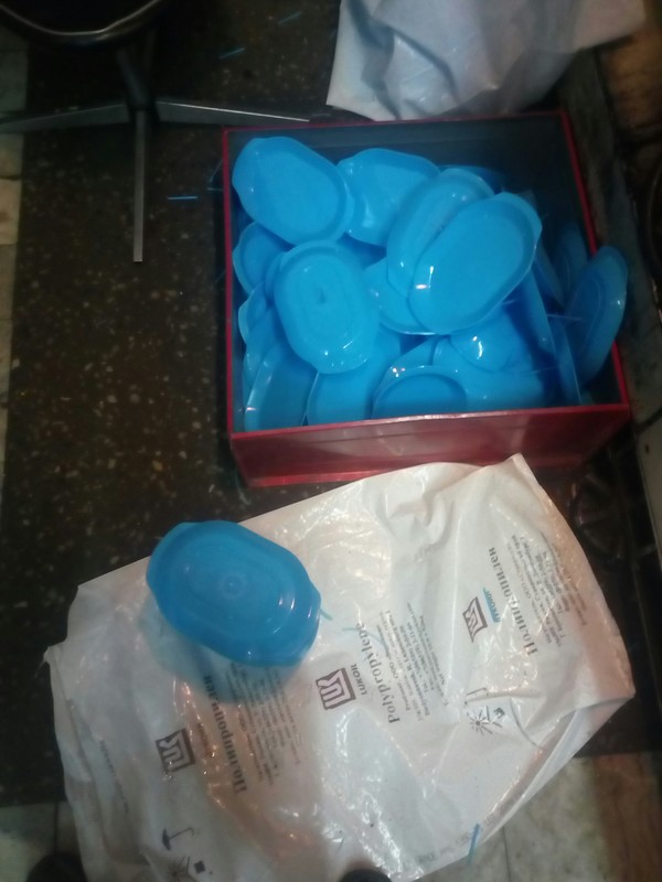 3. Воздушные клапана. тут к сожалению гиф не будет. Когда фоткал мы ничего с этим видом толкателей не лили =( Но сама система проста. Воздушный клапан запитан на толкатель машины, когда происходит толчек клапан открывает ход воздуху, он поступает в форму и открывает воздушные толкатели попадая под изделие, создавая внутри заготовки давления и тем самым отделяет ее от формы и выкидывает к чертям собачьим =) На фото разобранная форма тазика - пуансон. Круглешки по бокам поверхности это и есть клапана сброса.