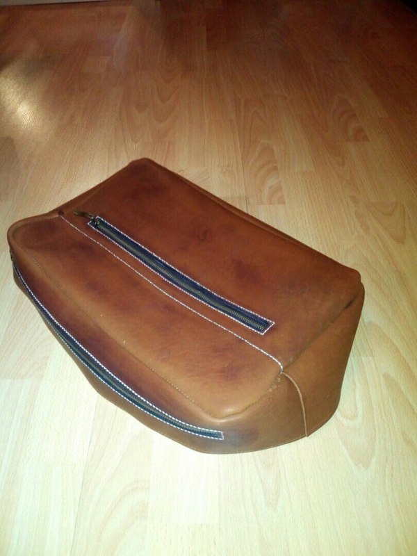 Собственно вот сама сумка, покрыл её коричневым кремом, а сверху обувным бесцветным воском салтон)