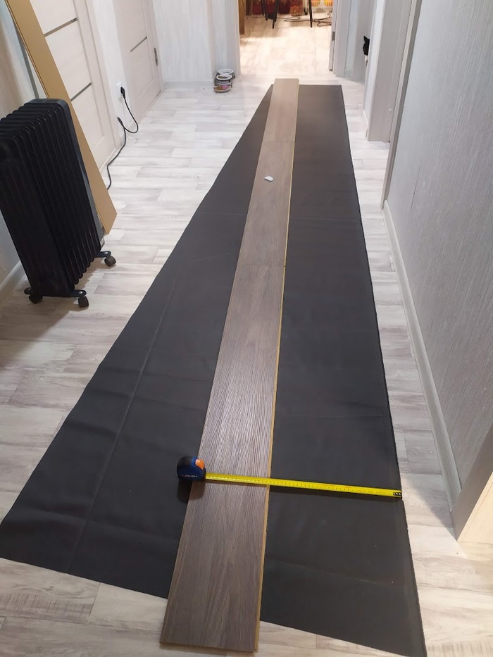 Поэтому фото, как я это делал не будет. В Видео гораздо лучше описано. Только поделюсь лайфхаком, как ровно разметить на полотне в 4 метра (ламинат):