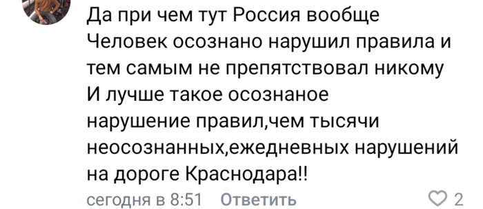 Стандартное нарушение ПДД в Краснодаре, и стандартная реакция большинства людей в местном паблике