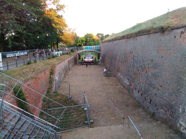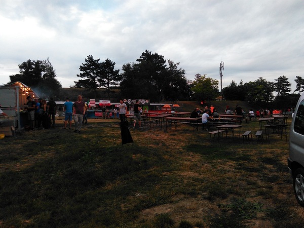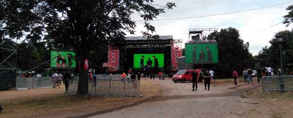 Бодро перемахнув через мост я принялся искать что-то напоминающее вход на территорию фестиваля. Свернул в первую попавшуюся улочку и поднявшись по довольно таки крутой горке наткнулся на одинокого рабочего и рамки металлоискателя. На вход не очень было похоже. Спросил у рабочего, где можно приобрести билеты. В ответ он отправил меня обратно на улицу и сказал повернуть направо. Спустившись с горки я уже чувствовал некую усталость, все таки было жарко, а жару я переношу не очень. Пройдя дальше по улице и миновав некую арку я увидел на противоположной стороне дороги информационный щит фестиваля, который указывал куда-то в овраг и гласил про регистрацию на фестиваль и еще что-то. Припекало уже знатно, пешеходный переход остался в 150 метрах позади, движение было не очень-то сильное, но я в этом плане принципиальный, и поэтому поперся обратно до пешеходного перехода. Пройдя чуть дальше, чем в прошлый раз, но уже по другой стороне дороги, я увидел еще один щит, опять же на противоположной стороне дороги, на котором красовалась надпись “TICKETS” и указывал он куда-то в сторону крепости. Ругнувшись про себя, решил идти дальше в надежде, что где-то там будет переход. Таковой нашелся еще метров через 150. Перейдя дорогу уже было направился вверх по горке как меня окликнул охранник, мол туда нельзя. Спросил его где можно купить билет, оказалось на той стороне дороги, где регистрация и прочее. Так же он спросил откуда я, услышав, что из России улыбнулся и покивал.
