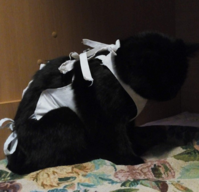Чтобы сердце Кости сильно не волновать, решили, что кошечке надо сделать стерилизацию. Перенесла ее она стойко.