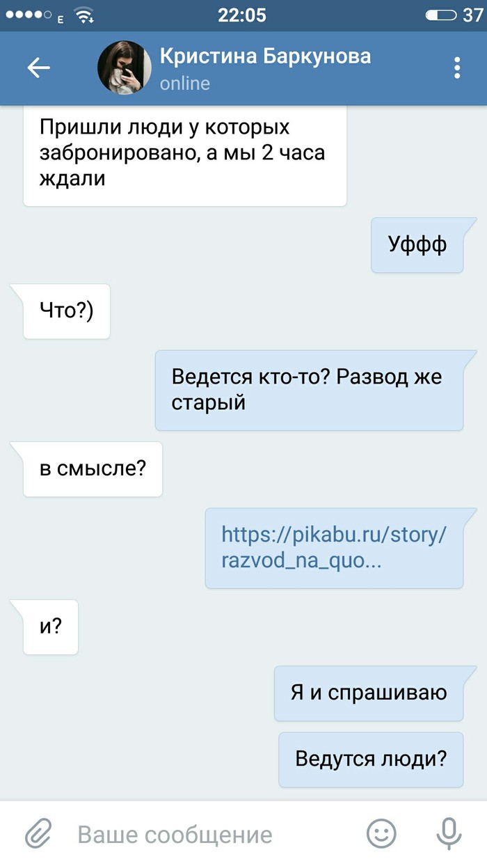 Пишет на днях девушка, хочет познакомиться. На следующее утро происходит следующий диалог.